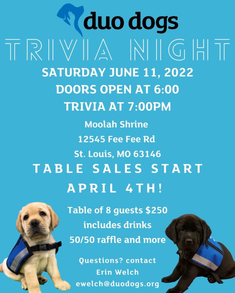Call 314-997-2325 to purchase tables or email ewelch@duodogs.org