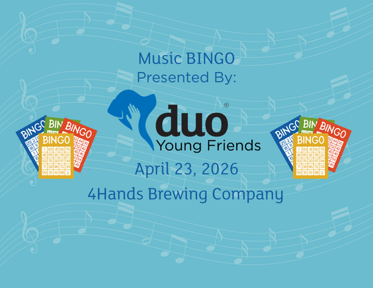 $10Join the Young Friends of Duo on April 23, 2026 at Four Hands Brewing Company for a fun-filled evening of Music Bingo! For just $10 entry, you’ll enjoy great music, friendly competition, and the chance to win prizes each round, all while supporting Duo’s life-changing programs.